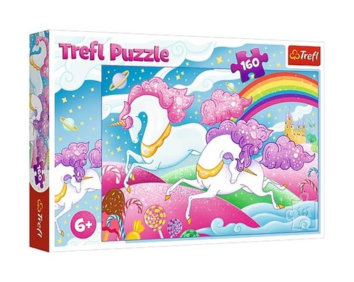 Puzzle składające się ze 160 elementów stworzone z myślą o wszystkich wielbicielach jednorożców .Po ułożeniu powstanie obrazek o wymiarach 410x278 mm. Wysoką jakość, nasycenie kolorów i bezpieczeństwo układania zapewnia kalandrowany papier odbijający światło i wykorzystanie materiałów ekologicznych.