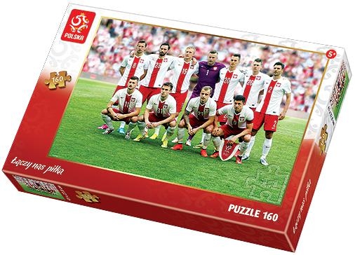 Puzzle 160 elementów z reprezentantami Polski w piłkę nożną. Doskonały pomysł na prezent dla wszystkich fanów piłki nożnej. Po ułożeniu powstanie obrazek o wymiarach 41x27,8cm. Wysoką jakość, nasycenie kolorów i bezpieczeństwo układania zapewnia kalandrowany papier odbijający światło i wykorzystanie materiałów ekologicznych. Puzzle na licencji PZPN.