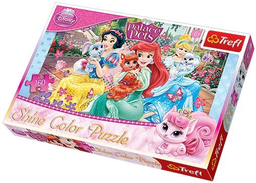 Księżniczki i ich zwierzaki - Puzzle Shine Color Puzzle 160 elementów z Księżniczkami Disneya i ich pupilami. Po ułożeniu powstanie obrazek o wymiarach 41x27,8cm. Shine Color Puzzle to bohaterowie ulubionych bajek w nowej, lśniącej odsłonie!