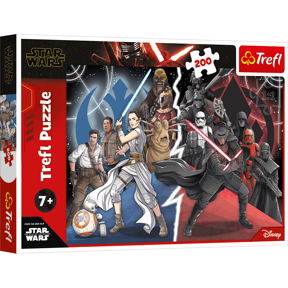 "Bitwa w galaktyce" to puzzle składające się z 200 elementów z bohaterami najnowszego, IX epizodu sagi Star Wars.