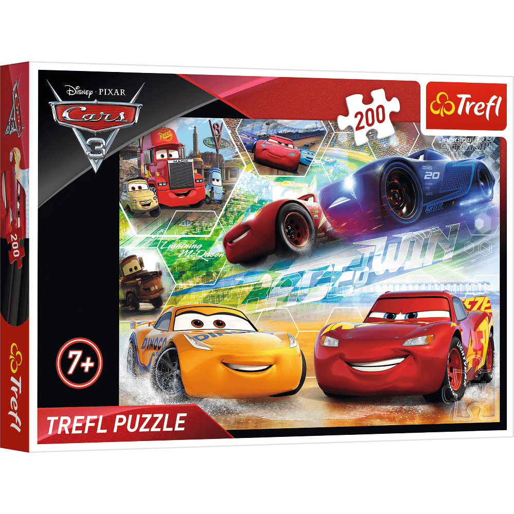 Puzzle 200 elementów z postaciami filmu animowanego Disneya Cars 3. Po ułożeniu powstanie obrazek o wymiarach 48x34 cm. Wysoką jakość, nasycenie kolorów i bezpieczeństwo układania zapewnia kalandrowany papier odbijający światło, pokryty ekologicznymi farbami spożywczymi.