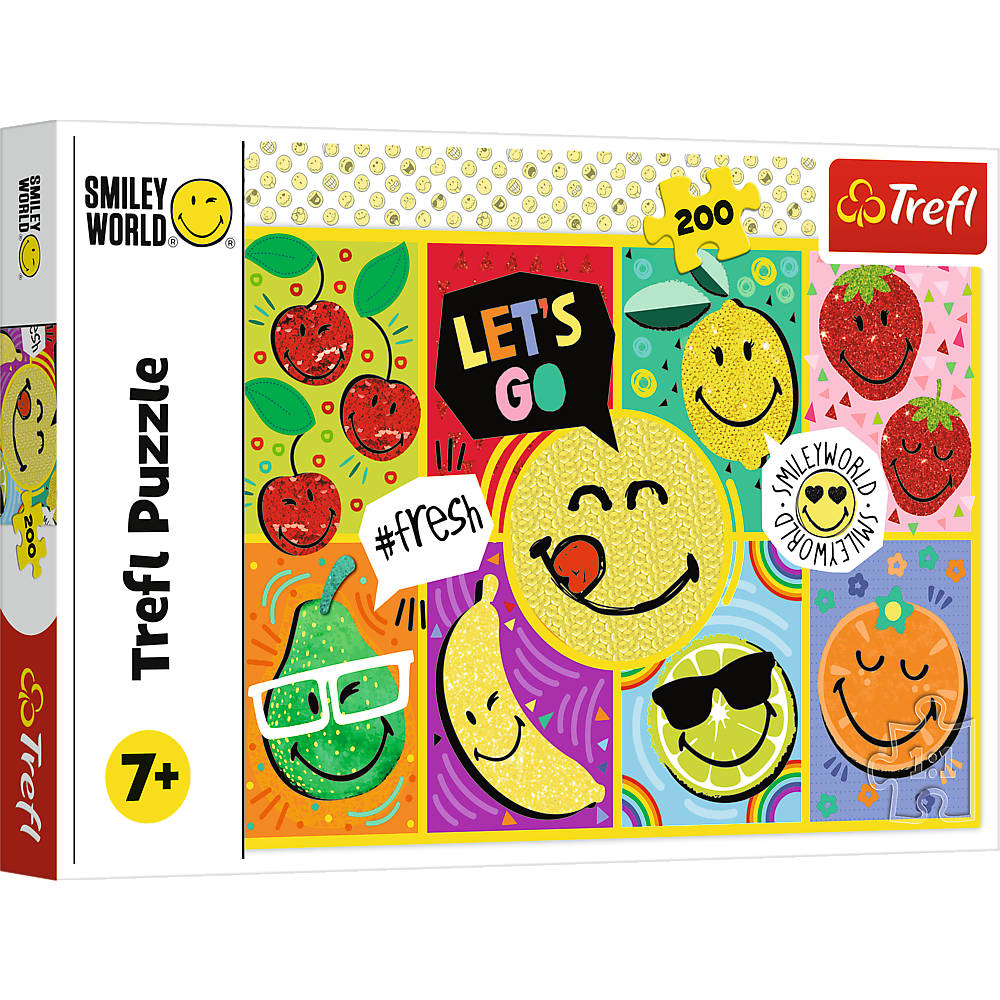 Opis produktuZasady bezpieczeństwaPuzzle Trefl 200 elementów z motywem Smiley. x