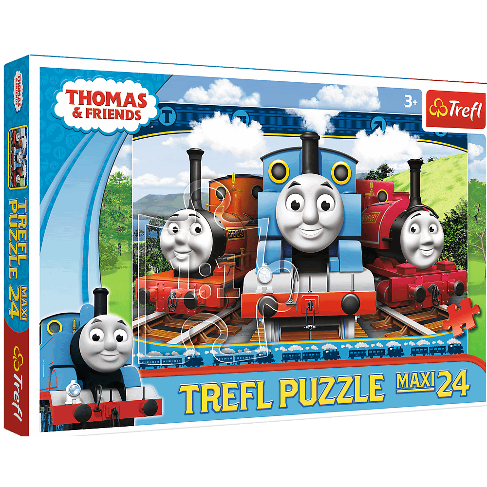 Puzzle stworzone specjalnie z myślą o dzieciach powyżej 3 roku życia. Układankę tworzą 24 bardzo duże puzzlowe elementy, dzięki czemu dzieci poradzą sobie z samodzielnym ułożeniem obrazka. Zabawa rozwija zdolności manualne, spostrzegawczość i daje radość samodzielnego tworzenia. Obrazek przedstawia bohaterów serialu animowanego ""Tomek i przyjaciele"". Puzzle przyjazne dziecku! Do produkcji Puzzli Maxi, dedykowanych młodszym dzieciom, użyliśmy materiałów ekologicznych i płótnowanego papieru eliminującego odbijanie światła, co gwarantuje bezpieczeństwo i radość zabawy.