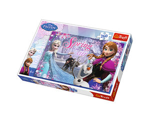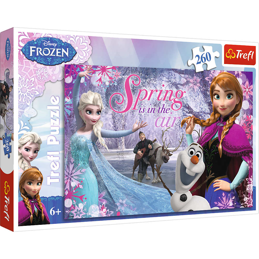 Puzzle 260 elementów z bohaterami filmu Disna ""Kraina Lodu"". Po ułożeniu powstanie obrazek o wymiarach 60x40cm. Wysoką jakość, nasycenie kolorów i bezpieczeństwo układania zapewnia kalandrowany papier odbijający światło i wykorzystanie materiałów ekologicznych.