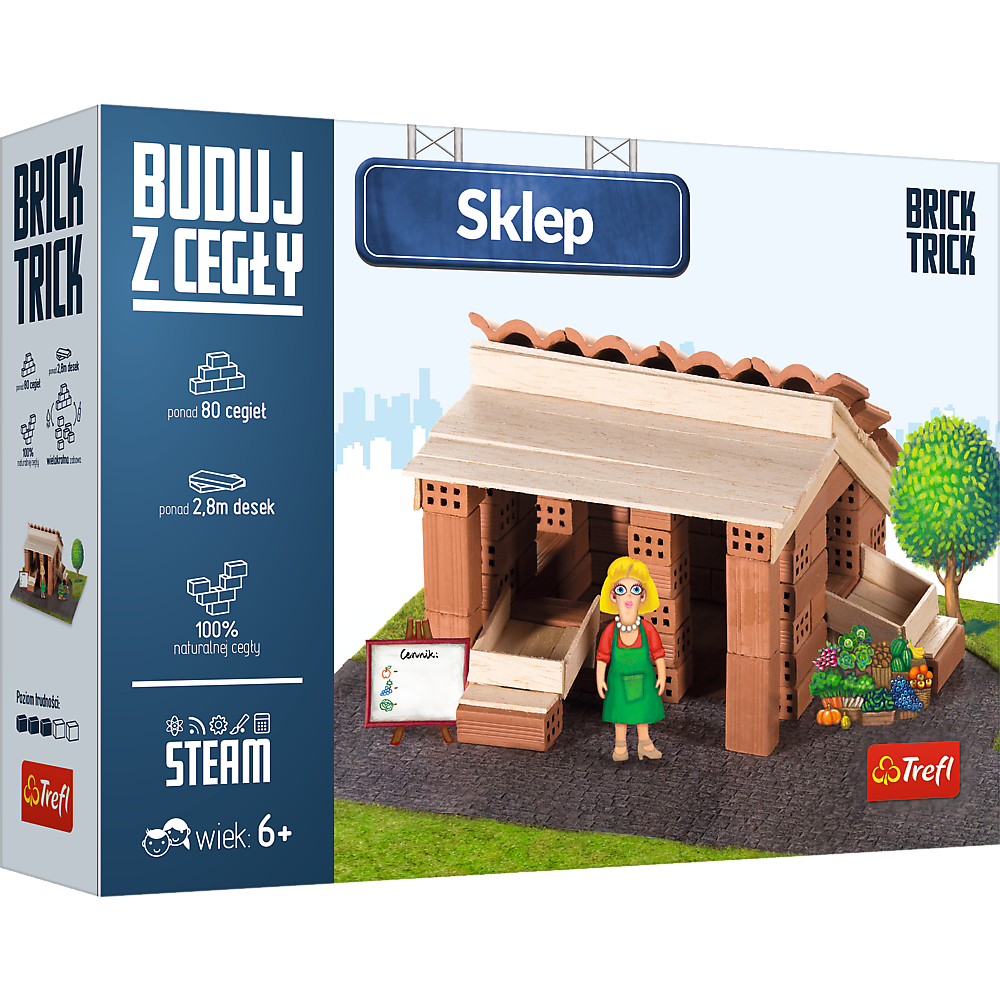 Brick Trick - Zabawa Murowana! Zostań konstruktorem, wykorzystując do budowy prawdziwe cegły i drewno! W instrukcji znajdziesz obszerne ciekawostki prosto z placu budowy. Dowiedz się, jak urozmaicić swoją konstrukcję dzięki wielu interesującym pomysłom i rozwiązaniom. Buduj według instrukcji lub użyj wyobraźni do stworzenia własnej, niepowarzalnej konstrukcji. Możesz też połączyć kilka budynków, tworząc klimat wsi, miasta lub średniowiecza.