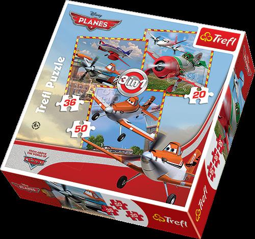 TREFL - świat puzzli, w którym nuda nie istnieje. Są źdródłem zabawy i przyjemności.To podarunek dla każdego - dziecka i dorosłego. Zapraszamy na niesamowite chwile z puzzlami Trefl. Potrójna radość układania! Puzzle ""Podniebne Podboje 3w1"" to trzy układanki różnej wielkości z bohaterami bajki ""Samoloty"". Zestaw doskonale spełnia oczekiwania rodzeństwa - każdy ułoży swój ulubiony obrazek nawet w tym samym czasie. Zróżnicowana liczba elementów pozwala na zabawę zarówno młodszym, jak i nieco starszym dzieciom. Dodatkowym urozmaiceniem zabawy może być układanie na czas, porównywanie obrazków, szukanie różnic i podobieństw. Produkt oparty na licencji Disney Planes.