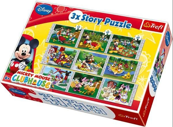 TREFL - świat puzzli, w którym nuda nie istnieje. Są źdródłem zabawy i przyjemności.To podarunek dla każdego - dziecka i dorosłego. Zapraszamy na niesamowite chwile z puzzlami TreflKlub Przyjaciół Myszki Miki - 3x Story PuzzleJeśli lubisz opowiadać historie to polubisz 3x Story Puzzle. Ten wspaniały zestaw dla najmłodszych składa się z 3 puzzlowych historyjek o przygodach Myszki Miki, z których każda przedstawiona jest za pomocą trzech obrazków. Razem to aż 9 układanek do zabawy zamkniętych w jednym pudełku. Historyjki można dowolnie łączyć i zakańczać, wykorzystując do tego odpowiednią ramkę. Porusz swoją wyobraźnię i stwórz naprawdę długą opowieść. 3x Story Puzzle to wiele możliwości i mnóstwo radości.Układanka jest doskonałym sposobem na ćwiczenie umiejętności logicznego myślenia i pobudzenie kreatywności.Produkt oparty na licencji Disneya.