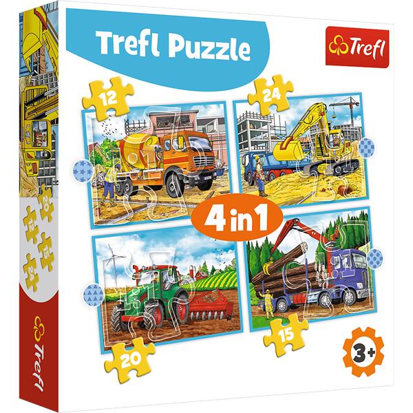 Puzzle 4w1 Duże maszyny budowlane TREFL