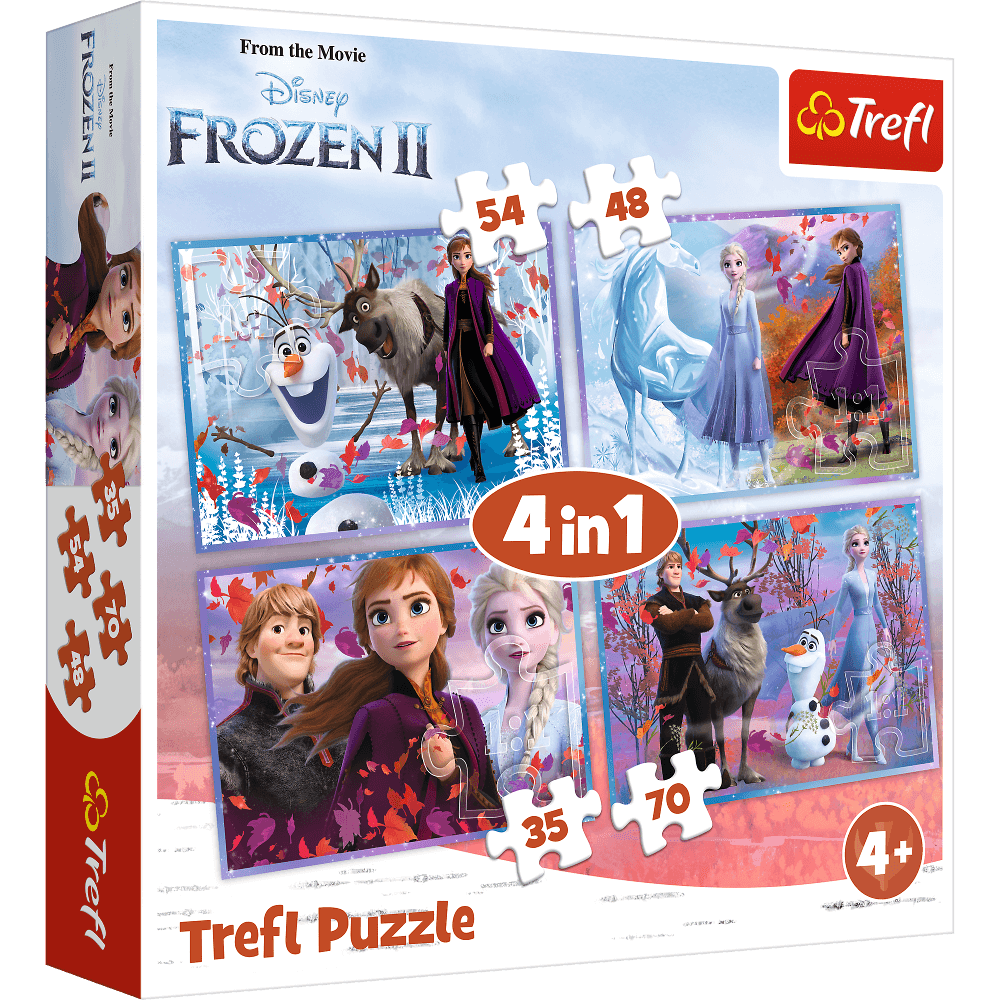 Puzzle składające się z 4 układanek z bajki Kraina Lodu 2.