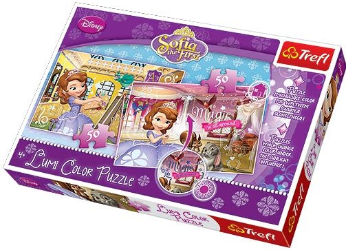 Jej Wysokość Zosia - Puzzle Lumi ColorLumi Color to niepowtarzalne puzzle, które zmieniają kolor!Użyj pudełka jako podstawki do układania puzzli, a po ich ułożeniu wystaw je na działanie promieni słonecznych i zobacz, które fragmenty zmieniły swoją barwę!Zestaw 2 układanek 50 elementowych z bohaterami serialu ""Jej Wysokość Zosia"". Po ułożeniu powstaną obrazki o wymiarach 32x21,5 cm. Wysoką jakość, nasycenie kolorów i bezpieczeństwo układania zapewnia kalandrowany papier odbijający światło i wykorzystanie materiałów ekologicznych.