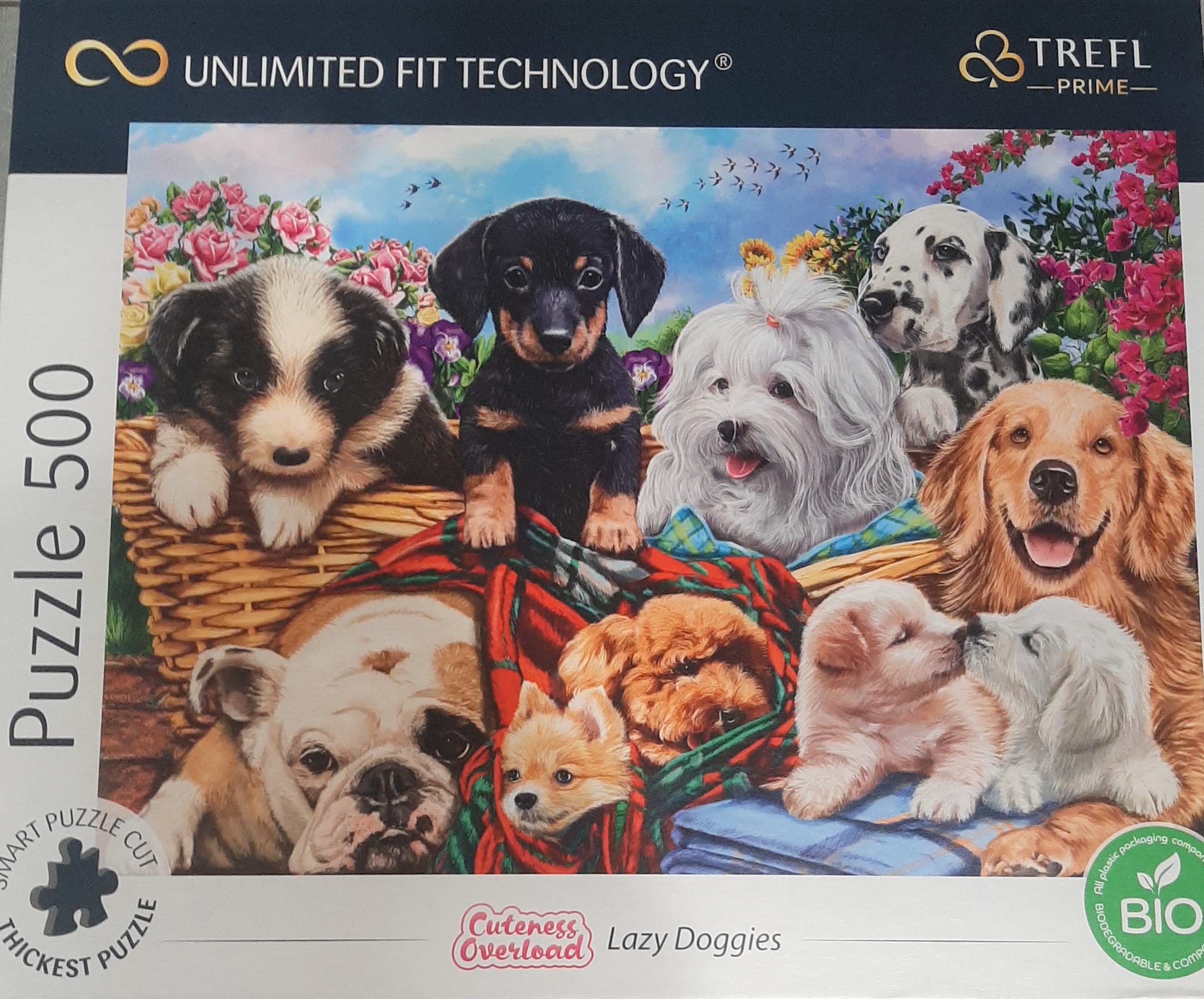 Opis produktuZasady bezpieczeństwaPuzzle z serii Trefl Prime Unlimited Fit Technology składające się z 500 elementów są przeznaczone dla prawdziwych miłośników układanek! Puzzle Lazy Doggies przedstawiają słodkie pieski. Po ułożeniu powstanie obrazek o wymiarach 480 x 340 mm. Puzzle są wykonane z wysokiej jakości materiałów z zastosowaniem najgrubszej tektury, specjalnej metody cięcia oraz unikalnych kształtów. Dzięki temu możemy stworzyć indywidualny kolaż i łatwo przenieść układankę. Dodatkowo poszczególne elementy są wykonane z ekologicznych materiałów. Worek zsypowy i stickery zostały wykonane z folii biodegradowalnej. Produkty nie są opakowane w folię termokurczliwą. x