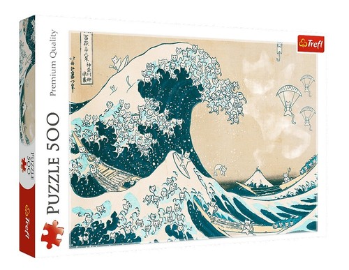 Opis produktuZasady bezpieczeństwaPuzzle 500 elementów Wielka kocia fala przedstawiające koty na wzburzonym morzu. Po ułożeniu powstanie obrazek o wymiarach 48x34 cm. Wysoką jakość, nasycenie kolorów i bezpieczeństwo układania zapewnia kalandrowany papier odbijający światło, pokryty ekologicznymi farbami spożywczymi. x