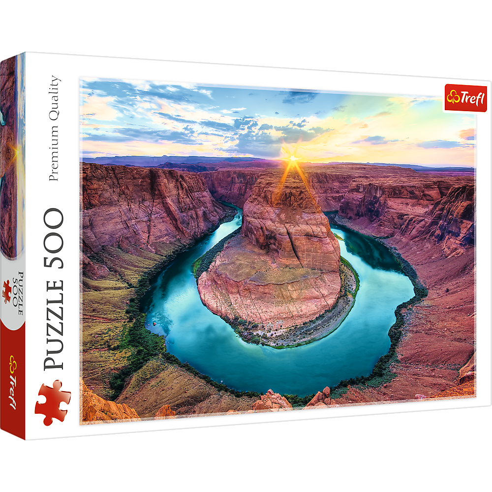 Puzzle 500 elementów przedstawiające widok na Wielki Kanion w USA. Po ułożeniu powstanie obrazek o wymiarach 48x34 cm. Wysoką jakość, nasycenie kolorów i bezpieczeństwo układania zapewnia kalandrowany papier odbijający światło, pokryty ekologicznymi farbami spożywczymi x