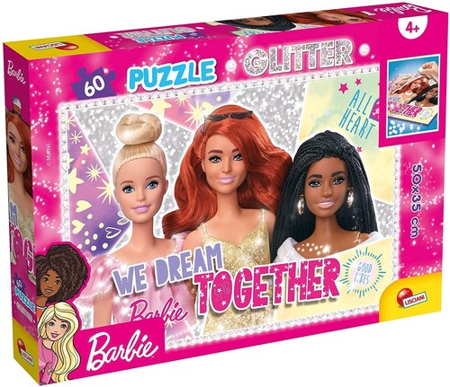 Wyjątkowe brokatowe puzzle na licencji Barbie. W zestawie znajduje się obrazek o wielkości 50 x 35 cm, który składa się z 60 elementów.