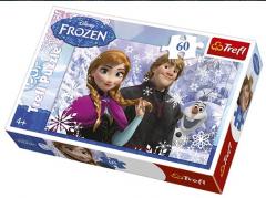 Puzzle 60 elementów z serii Frozen. Wymiary obrazka po ułożeniu: 33x22 cm. Dla dzieci w wieku powyżej lat 4.