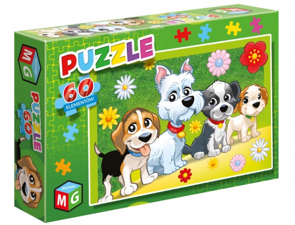 Opis produktuZasady bezpieczeństwaPuzzle rozwijają zdolności manualne, pobudzają ciekawość, spostrzegawczość oraz zdolność kojarzenia. Układanie puzzli to dla dzieci dobry trening zręczności, myślenia, percepcji i właściwego kojarzenia koloru i kształtu. Z 60 elementów układanki można ułożyć obrazek o wymiarach 33 x 22 cm. Zawartość pudełka: Puzzle - 60 szt. x