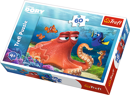 Puzzle 60 elementów z bohaterami filmu animowanego Disneya ""Gdzie jest Dory?"". Po ułożeniu powstanie obrazek o wymiarach 33x22 cm. Wysoką jakość, nasycenie kolorów i bezpieczeństwo układania zapewnia kalandrowany papier odbijający światło, pokryty ekologicznymi farbami spożywczymi.