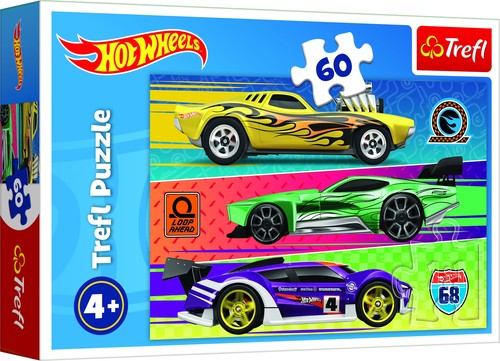 Hot Wheels to puzzle składające się z 60 elementów, zaprojektowane z myślą o wszystkich fanach i fankach przygód Hot Wheels. Po ułożeniu układanki powstanie obrazek o wymiarach 330x220mm. Produkt został wykonany z wysokiej jakości materiałów, z zastosowaniem specjalnego kalandrowanego papieru odbijającego światło, co ułatwia układanie. Produkt został wyprodukowany w Polsce, a do produkcji zostały użyte materiały ekologiczne. x