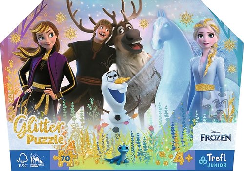 Opis produktuZasady bezpieczeństwaMagiczna przyjaźń - puzzle glitter marki Trefl Junior to układanka składająca się z 70 elementów. Jest ozdobiona delikatnym złotym brokatem, który sprawia, że opakowanie i poszczególne elementy pięknie się mienią. Idealna dla małych miłośników układanek i oraz fanów bajki Kraina Lodu. Układanka została zapakowana w praktyczny kuferek z uchwytem, który daje możliwość łatwego przenoszenia zabawki.
