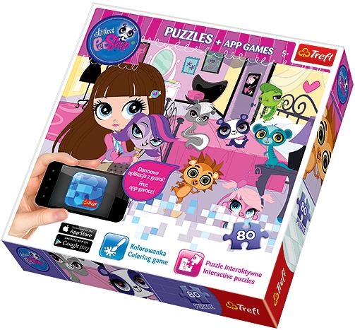 Wieczorne zabawy - Puzzle + AplikacjeMnóstwo świetnej zabawy w jednym pudełku! Układaj puzzle, koloruj i zbierz wszystkie trofea! Pobierz i zainstaluj na urządzeniu mobilnym z kamerą darmową aplikację Trefl Puzzle. Ułóż puzzle i zeskanuj kartę-klucz za pomocą aplikacji. Pozytywna weryfikacja skanera odblokuje dodatkowe puzzle interaktywne oraz moduł zbierania trofeów!Puzzle 80 elementów z bohaterami serialu animowanego ""Littlest Pet Shop"". Po ułożeniu powstanie obrazek o wymiarach 41x27,8 cm.
