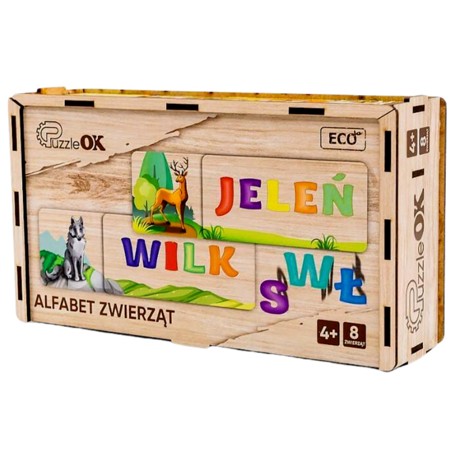 8 tablic ze zdjęciami zwierząt literki wygodne pudełko