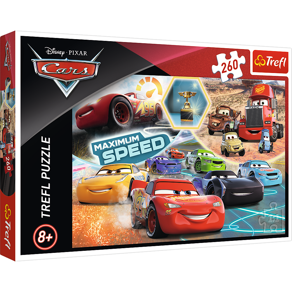 Puzzle 260 elementów z bohaterami filmu "Auta". Po ułożeniu powstanie obrazek o wymiarach 60x40cm. Wysoką jakość, nasycenie kolorów i bezpieczeństwo układania zapewnia kalandrowany papier odbijający światło i wykorzystanie materiałów ekologicznych. Puzzle oparte na licencji Disney Cars.
