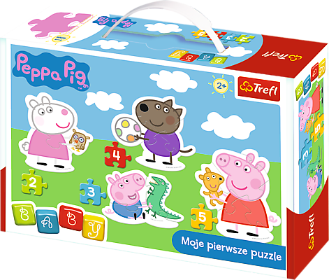 Świnka Peppa - Baby ClassicPierwsze puzzle dla najmłodszych dzieci!Bardzo wyraźne kolory, proste wzornictwo i duże klocki sprawiają, że nawet najmłodsze dziecko z łatwością dopasuje poszczególne elementy obrazka. Układanka rozwija zdolności manualne dziecka i poszerza jego wiedzę o otaczającym świecie.W każdym opakowaniu znajdują się puzzle konturowe, które są podzielone na 2,3,4 lub 5 klocków. Tektura o grubości 4 mm sprawia, że manipulowanie klockami i ich dopasowanie przez najmłodsze dzieci jest bardzo proste, bezpieczne i przynosi wiele radości!