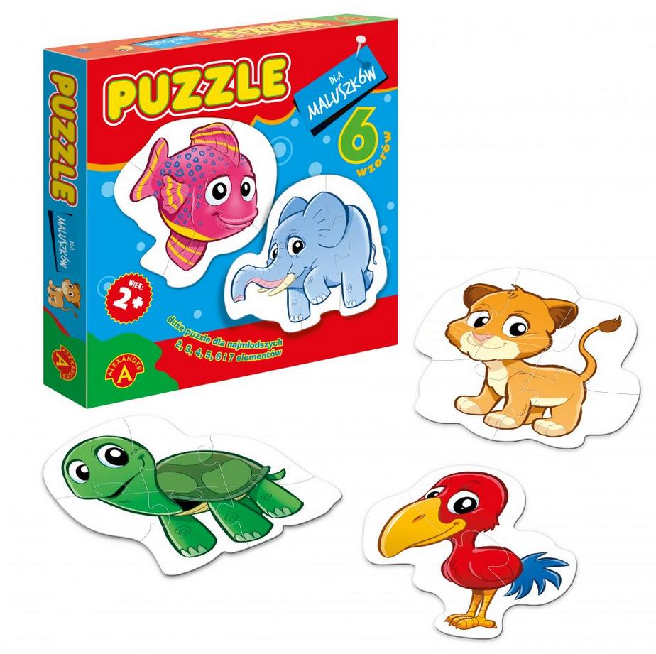 Opis produktuZasady bezpieczeństwaPuzzle dla maluszków to puzzle przeznaczone dla najmłodszych. W opakowaniu znajduje się 6 dużych układanek. Puzzle składa się z różnej liczby elementów - najprostsze układa się z z 2 elementów, trudniejsze z 7. Dziecko stopniowo poznaje cel i sens zabawy. Odkrywa zasady łączenia ze sobą poszczególnych części. Puzzle dla Maluszków ćwiczą spostrzegawczość, koncentrację, logikę prostych skojarzeń oraz cierpliwość.