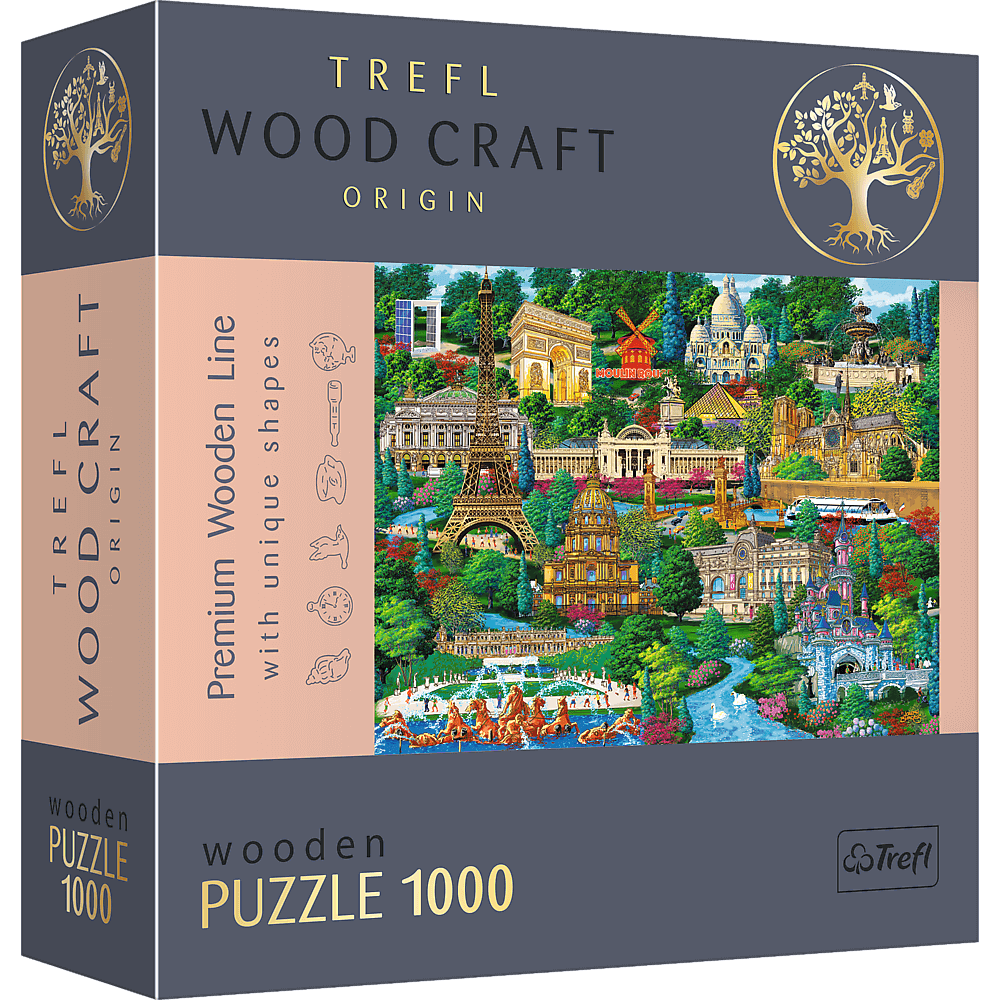 Seria puzzli 1000 elementów jest idealna dla wszystkich miłośników układanek, pozwoli stworzyć obrazek o wymiarach 51,9 x 37,5 cm przedstawiający znane miejsca we Francji. Układanka została wykonana z drewna, a opakowanie przyjazne środowisku w całości z tektury. Puzzle zawierają nieregularne elementy oraz 100 figurek w kształcie francuskich zabytków i symboli.