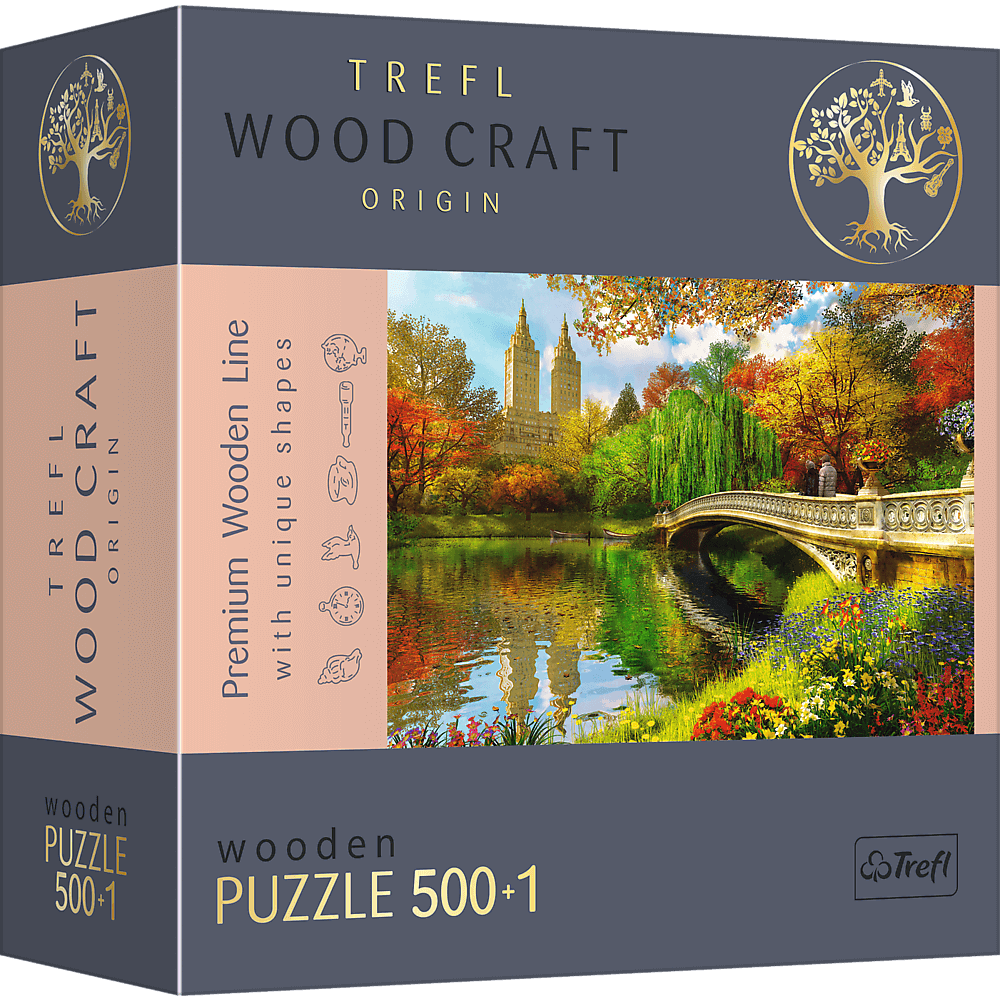 Seria puzzli 500+ 1 elementów jest idealna dla wszystkich miłośników układanek, pozwoli stworzyć obrazek o wymiarach 37,5 x 25.,4 cm przedstawiający widok na najsłynniejszy park w USA - Central Park na Mahattanie. Układanka została wykonana z drewna, a opakowanie przyjazne środowisku w całości z tektury. Puzzle zawierają nieregularne elementy oraz 50 figurek w kształcie amerykańskich symboli i zabytków.