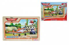 Drewniane puzzle w ramce, z wizerunkami postaci z bajki Samoloty.
