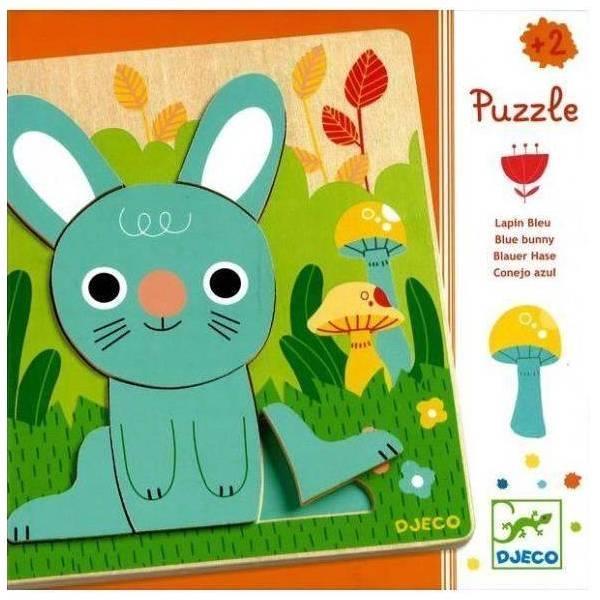 Drewniane puzzle 6 elementów, z których dziecko ma ułożyć postać królika.