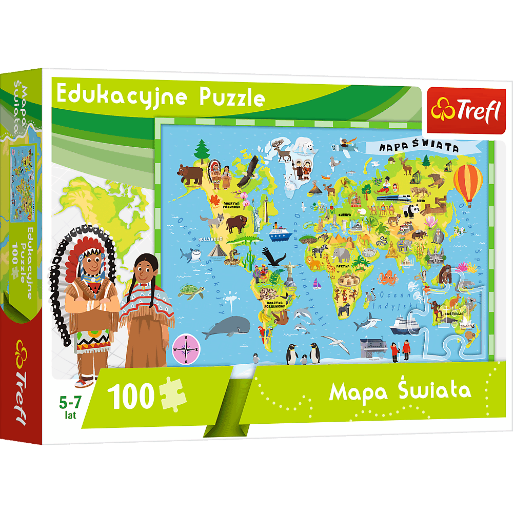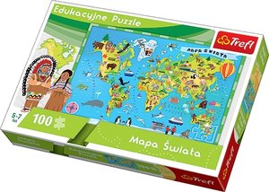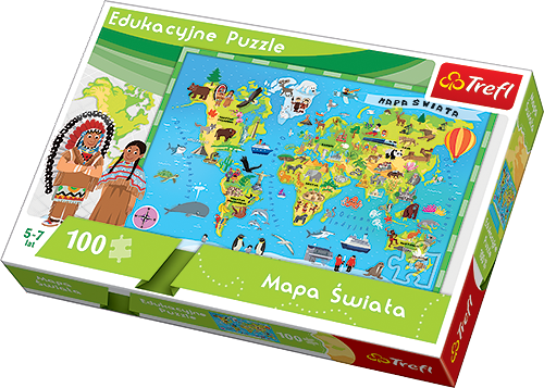 Mapa Świata to puzzle, które zwrócą uwagę zarówno dzieci, jak i ich rodziców. Prezentowane puzzle w przyjazny sposób łączą zabawę z nauką oraz pobudzają wyobraźnię i ciekawość świata. Układanka została specjalnie dostosowana do możliwości poznawczych dzieci w wieku 5-7 lat. Po ułożeniu powstanie obrazek o wymiarach 60x40 cm.