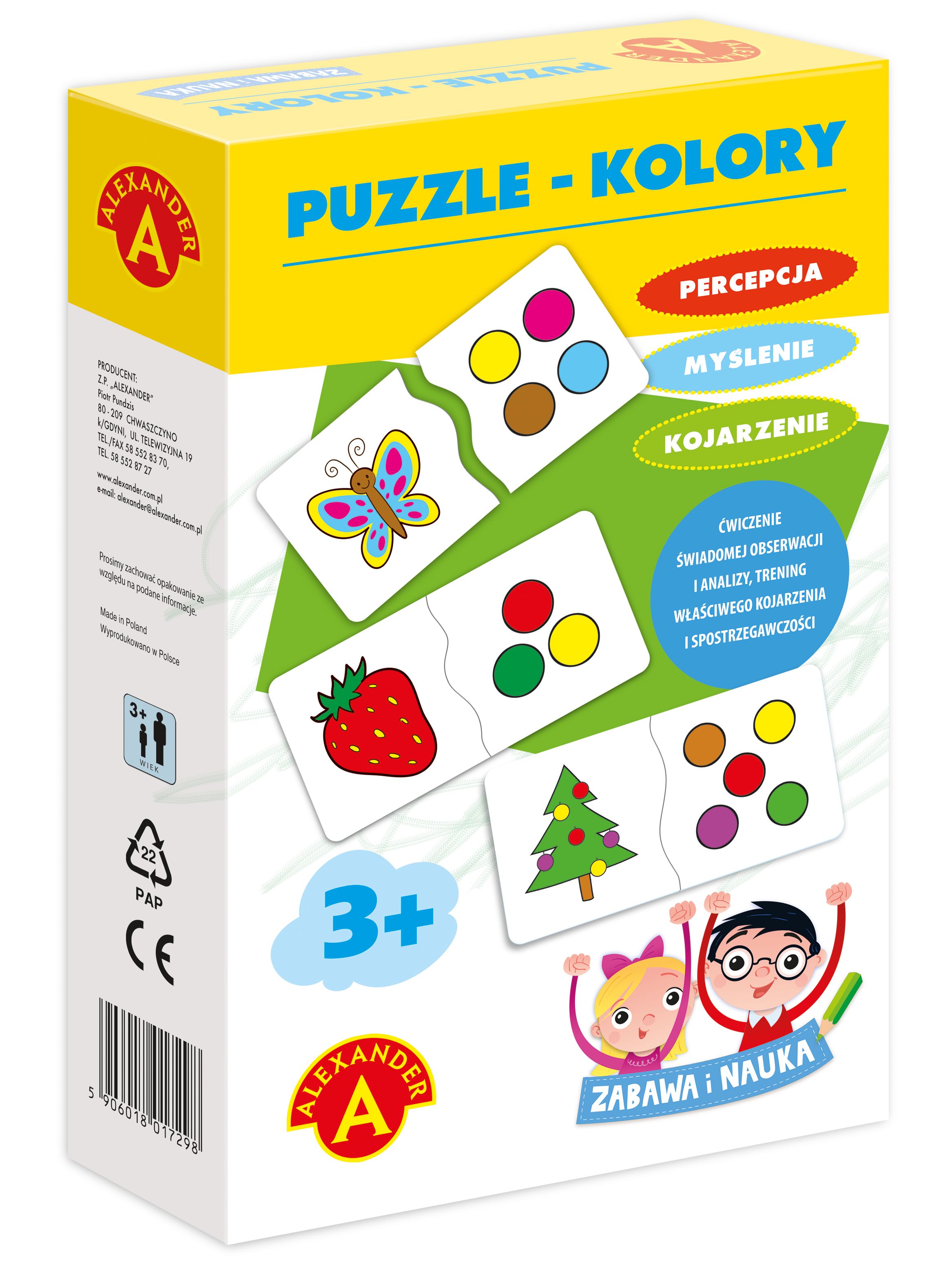 Zabawa polegająca na dokładnym przyjrzeniu się ilustracjom i dopasowaniu do nich puzzli z kółeczkami, na których zawarte zostały wszystkie barwy utrwalone na danym obrazku. Idealny pretekst do nauki nazw kolorów oraz świetny trening świadomej obserwacji.