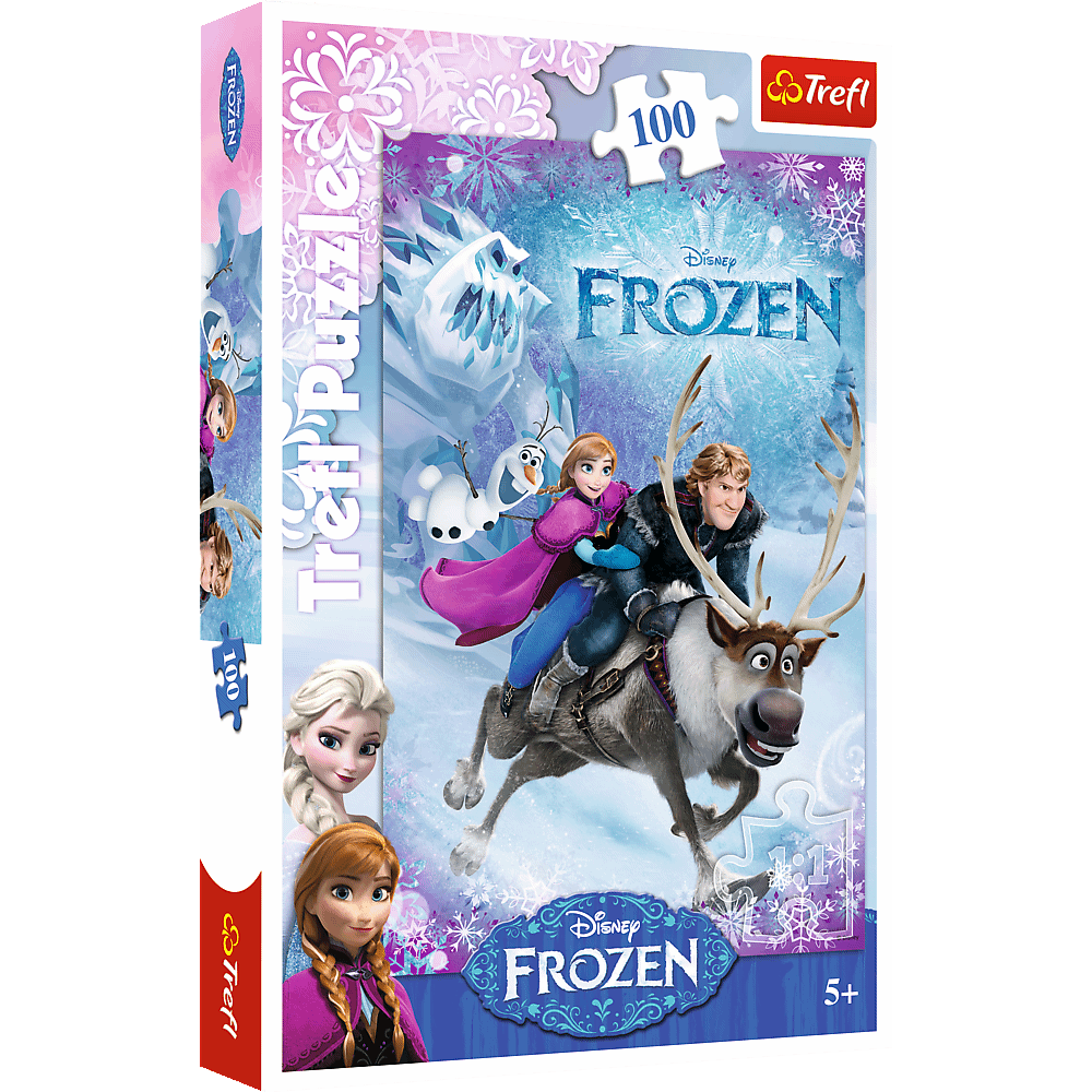 Puzzle 100 elementów z bohaterami filmu animowanego Disneya "Kraina Lodu". Po ułożeniu powstanie obrazek o wymiarach 27,8x41 cm. Wysoką jakość, nasycenie kolorów i bezpieczeństwo układania zapewnia kalandrowany papier odbijający światło i wykorzystanie materiałów ekologicznych. Puzzle na licencji Disney Frozen.