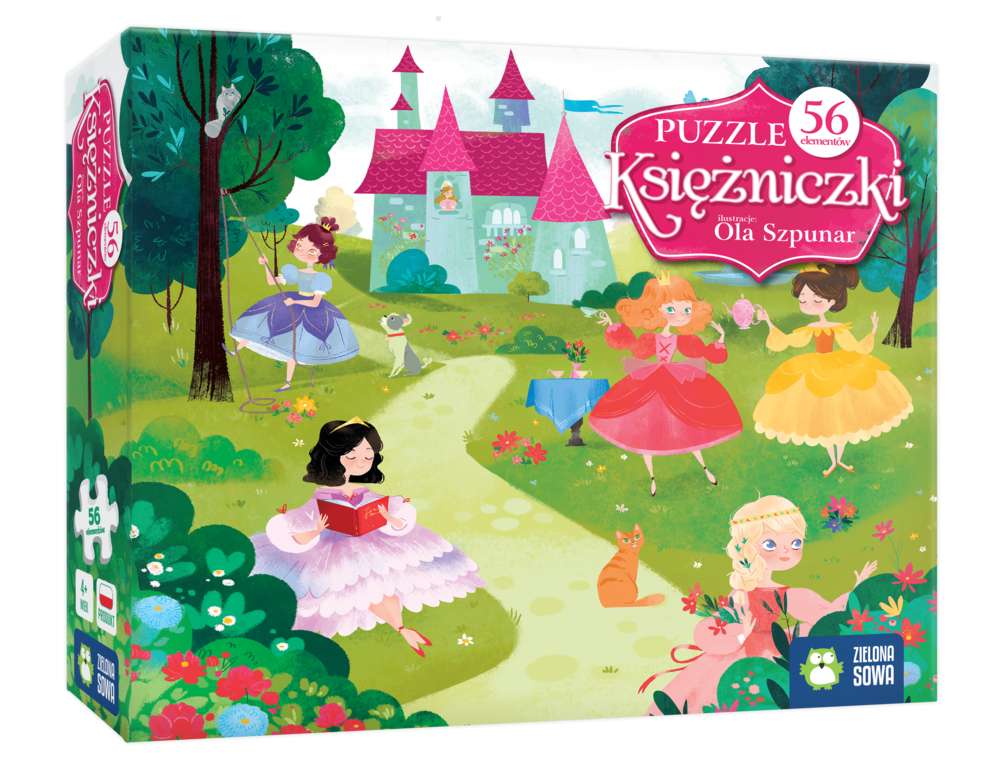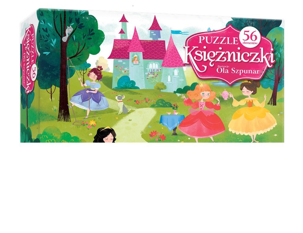 Puzzle 56 elementów dla miłośniczek olbrzymich zamków, rycerzy na białych koniach i przepięknych sukienek.