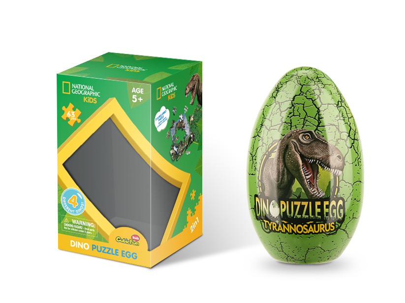 Opis produktuZasady bezpieczeństwaPuzzle Tyranozaura Rexa na licencji National Geographic w opakowaniu o kształcie jajka. Po ułożeniu 63 elementów, puzzle tworzą ilustracje 18 x 24 cm.