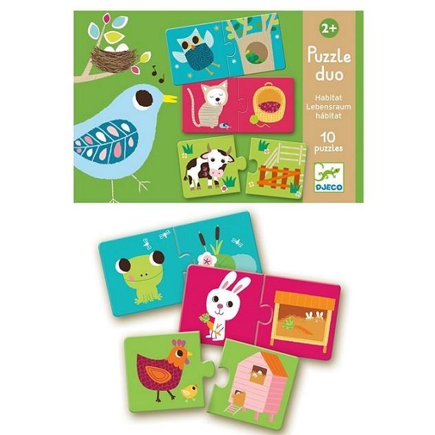 Pięknie wykonane pierwsze puzzle edukacyjne dla dzieci od 2 lat. Gdzie mieszka krówka a gdzie piesek? Dziecko musi połączyć ze sobą właściwe puzzle.Puzzle zawierają 20 elementów, łączą się w 10 par. Elementy są duże, tak aby dziecko nie miało problemów z łączeniem par.Wiek: 2+Materiał: gruba, trwała, lakierowana tekturaWymiar opakowania: 18 x 12 x 6 cm