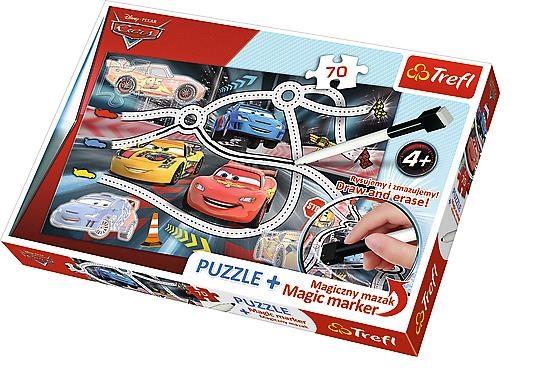 Puzzle Plus 70 + Magiczny mazak Auta Ekscytujący wyścig