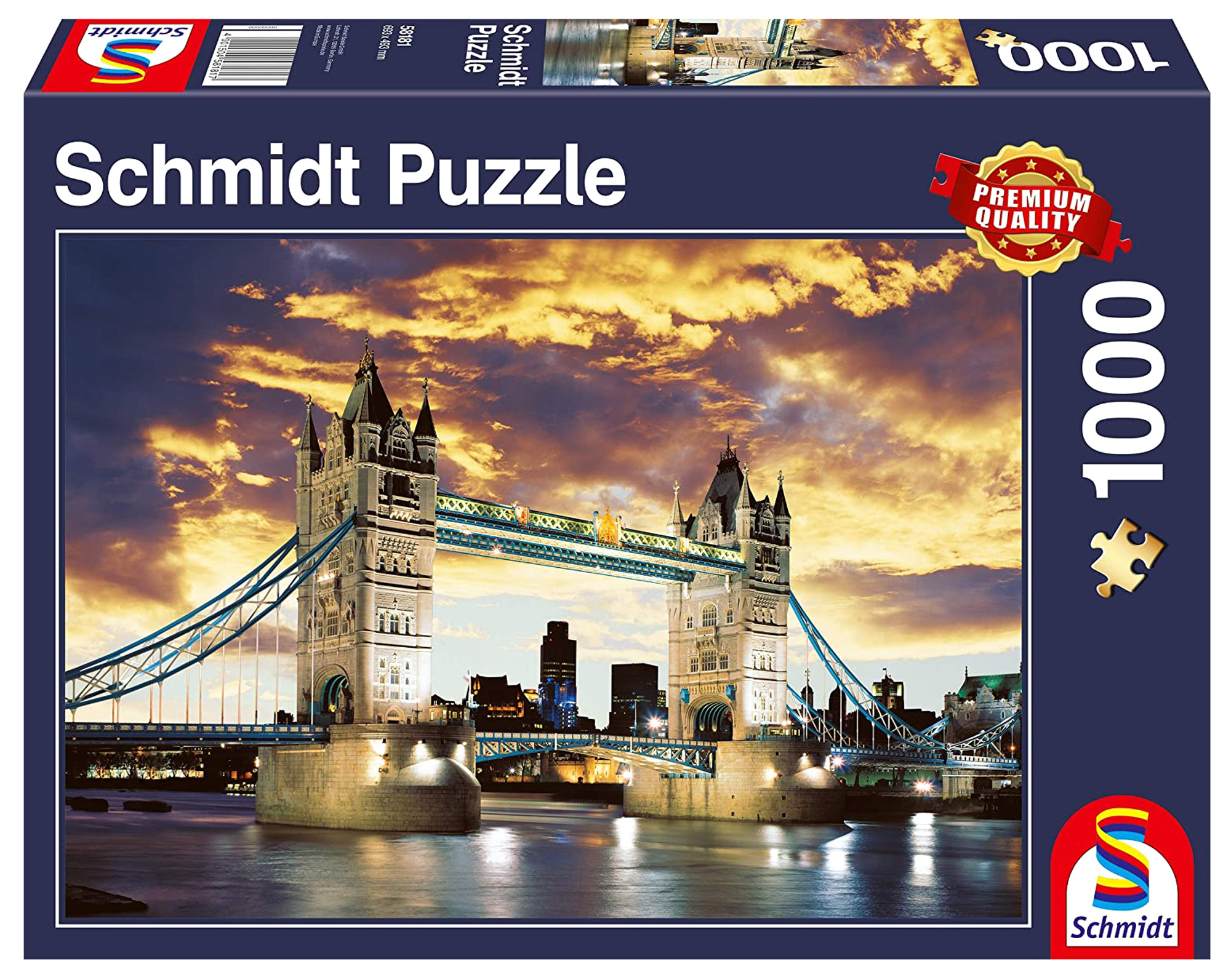 Jeden z symboli Londynu, łączący dwa brzegi Tamizy, majestatyczny Most Tower. Motyw przedstawia realistyczny obraz tego mostu o zachodzie słońca. Wystarczy że zaczniesz układać te puzzle i znajdziesz się nad brzegiem Tamizy podziwiając widok Tower Bridge. Puzzle jakości premium 1000 elementowe puzzle Premium Quality marki Schmidt zapewniają komfort układania dzięki idealnemu dopasowaniu i specjalnemu matowemu lakierowi, a także perfekcyjną spójność, dzięki czemu ułożony obrazek można przenieść w inne miejsce bez jego uszkodzenia. Wymiary puzzli po ułożeniu:693x493 mm x