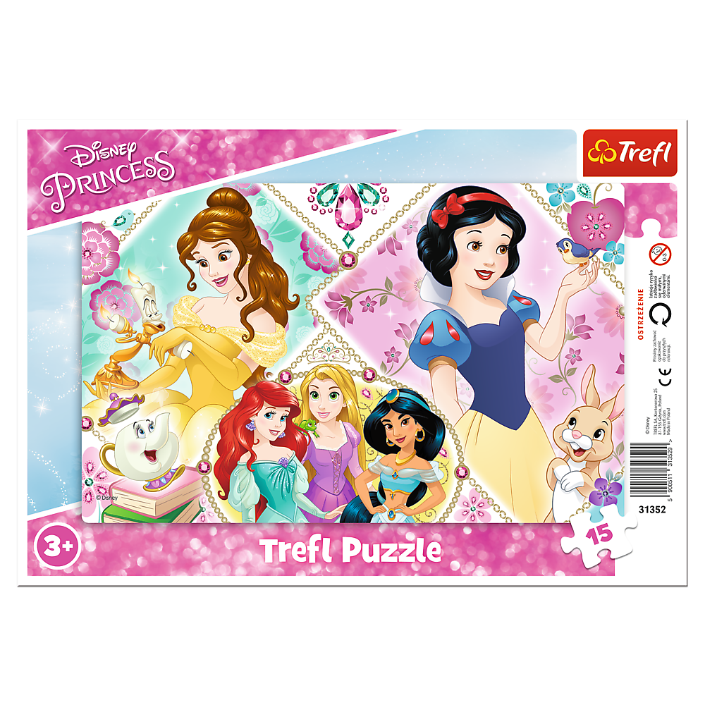Puzzle ramkowe 15 elementów przedstawiające księżniczki Disney'a. x