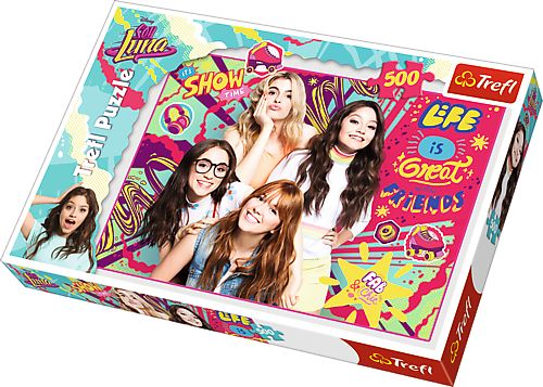 Puzzle 500 elementów z bohaterkami serialu Disneya pt. "Soy Luna". Po ułożeniu powstanie obrazek o wymiarach 48x34 cm. Wysoką jakość, nasycenie kolorów i bezpieczeństwo układania zapewnia kalandrowany papier odbijający światło, pokryty ekologicznymi farbami spożywczymi.