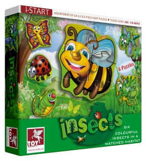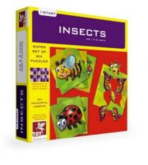Zestaw składa się z 6 obrazków puzzli przedstawiających owady. Obrazki mają 4 do 6 elementów. Każdy obrazek posiada odpowiadającą mu kształtem i wymiarami ramkę, w której powinien być ułożony.