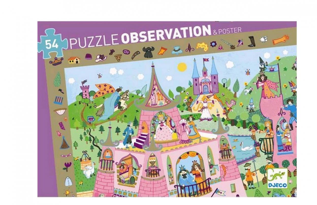 Puzzle obserwacyjne Zamek Księżniczki to wspaniała zabawa dla miłośników układania puzzli. Ten niezwykle bogaty w szczegóły obrazek intryguje i pobudza wyobraźnię dziecka.Wspaniałe ćwiczenie na spostrzegawczość i mnóstwo radości podczas układania! Spróbuj razem z dzieckiem odnaleźć na obrazku wszystkie elementy, które umieszczone są w ramce. To ćwiczenie tylko dla zaawansowanych!Do puzzli dołączony jest plakat przedstawiający obrazek w oryginalnych wymiarach, który doskonale sprawdzi się jako ozdoba dziecięcego pokoju.Ilość elementów:54 szt.Wiek:+5Wymiar obrazka po ułożeniu: 61 x 38 cmWymiar opakowania : 34 x 23 x 5 cm