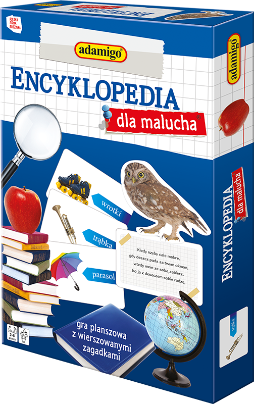 Opis produktuZasady bezpieczeństwaEncyklopedia dla malucha to zestaw rymowanych zagadek i przedmiotach i zjawiskach z codziennego życia człowieka. Proste zasady gry i atrakcyjna forma rozrywki sprawią wiele radości i pomogą dziecku w rozwoju. Zestaw zawiera: