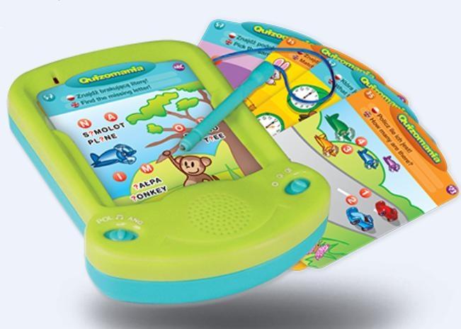 Dwujęzyczna (polski/angielski) konsola edukacyjna, która posiada 24 dwustronne karty z zadaniami z wiedzy ogólnej.