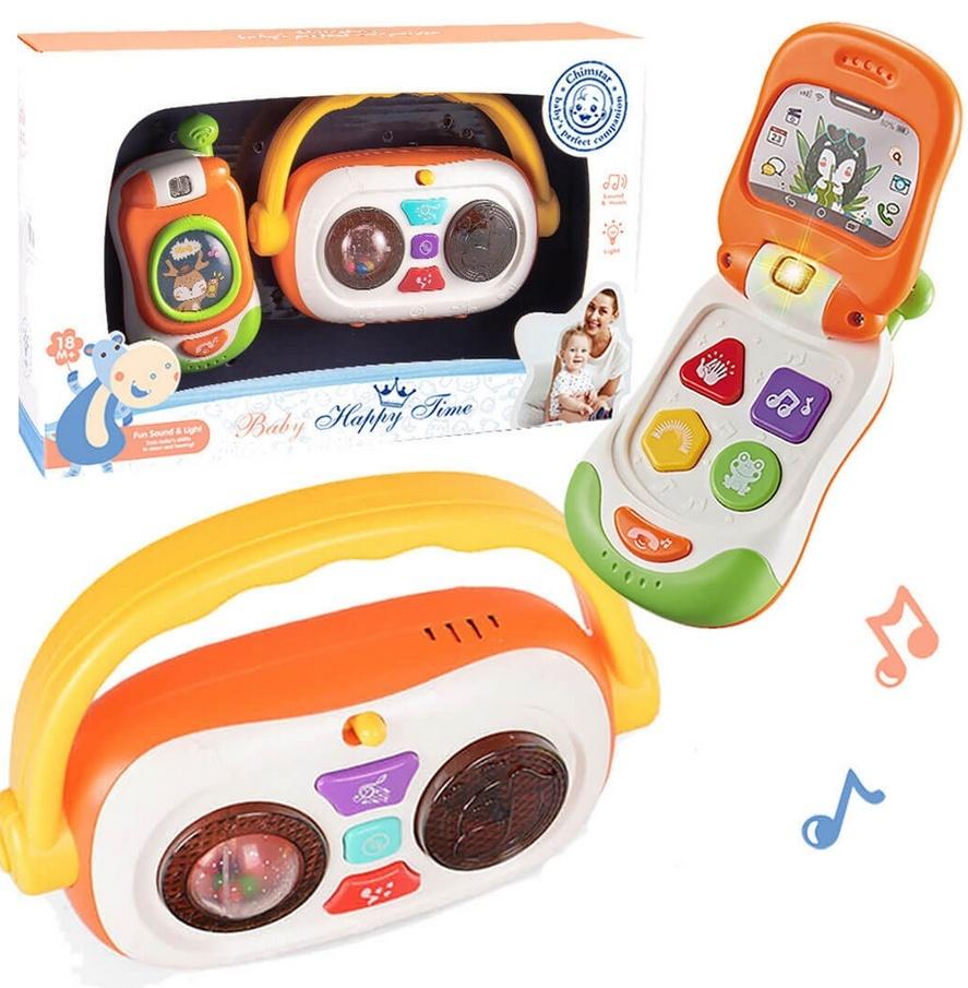 Zarówno telefonik jak i radyjko posiada duże kolorowe przyciski, dzięki czemu maluch bez problemu będzie sobie mógł je przełączać. Zabawka posiada także efekty świetlne, które przykuwają uwagę dziecka. Zabawka posiada wgrane proste melodie oraz odgłosy zwierzątek.