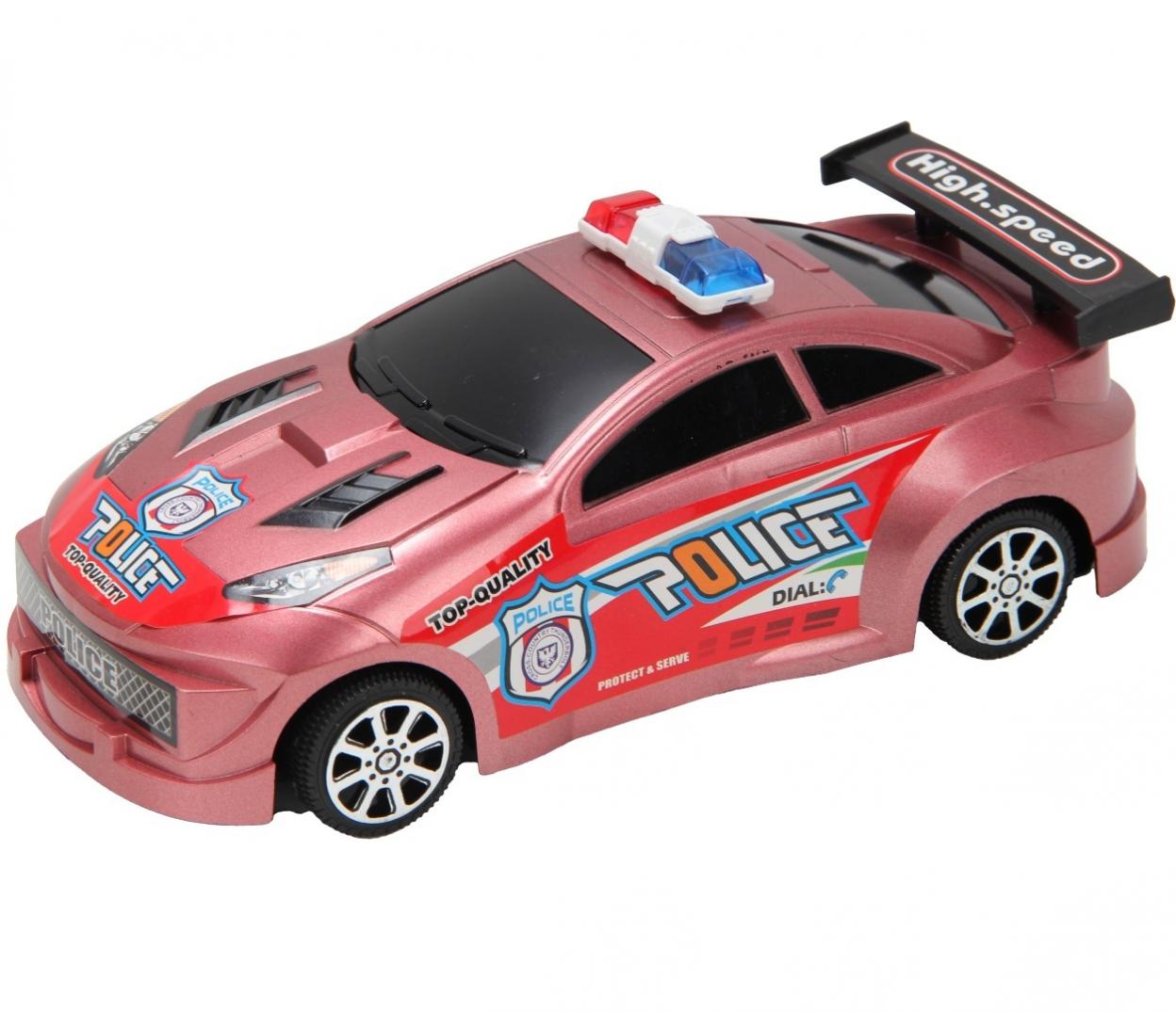 Opis produktuZasady bezpieczeństwaSamochód Policyjny Sportowy "High-Speed Police Car" Zaprezentuj swojemu dziecku ekscytujący świat pościgów i akcji z naszym sportowym samochodem policyjnym "High-Speed Police Car"! Ta nietypowa, różowa wersja policyjnego radiowozu z pewnością wyróżni się w kolekcji zabawek i zapewni wiele godzin kreatywnej zabawy. Dynamiczny Design i Realistyczne Detale: Samochód charakteryzuje się dynamicznym, sportowym wyglądem z aerodynamicznym spojlerem z napisem "High-Speed", co sugeruje jego gotowość do szybkiej akcji. Różowy, błyszczący lakier nadaje mu unikalny charakter. Na karoserii znajdują się realistyczne naklejki policyjne z napisami "POLICE", "TOP-QUALITY" oraz hasłem "PROTECT & SERVE", co dodaje zabawce autentyczności. Na dachu umieszczony jest klasyczny, dwukolorowy sygnał świetlny (kogut), który dodatkowo urozmaica zabawę. Rozwój Wyobraźni i Ról: Ten sportowy radiowóz to idealna zabawka do odgrywania scenek. Dzieci mogą wcielać się w rolę dzielnych policjantów, ścigać przestępców, patrolować ulice lub uczestniczyć w ekscytujących misjach. Taka zabawa rozwija wyobraźnię, kreatywność oraz umiejętności społeczne i narracyjne. Specyfikacje: Wymiary opakowania: 23x11x9 cm Kolor: Różowy (metaliczny/błyszczący) z niebieskimi i czerwonymi elementami (kogut) oraz czarnym spojlerem Materiał: Wysokiej jakości tworzywo sztuczne Dodatkowe Funkcje: Realistyczne naklejki policyjne, sygnał świetlny (prawdopodobnie bez funkcji świetlnych, chyba że zasilanie bateryjne jest niewidoczne na zdjęciu) Zalecany Wiek: Od 3 lat Sportowy samochód policyjny to świetny prezent dla każdego małego fana motoryzacji i służb specjalnych, który szuka czegoś wyjątkowego i pełnego akcji! x