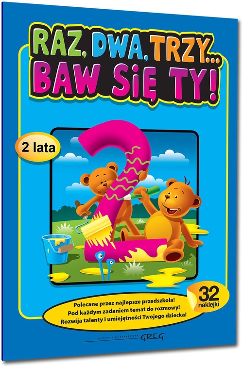 Raz, dwa, trzy... Baw się ty! - 2 lata to książeczka przygotowana specjalnie z myślą o najmłodszych dzieciach. Piękne, kolorowe ilustracje cieszą oko, a ciekawe zadania pozwalają rozwijać pierwsze umiejętności - łączenie w pary, szukanie różnic, rysowanie prostych linii. Sympatyczne postacie i wesołe kolory sprawią, że maluchy nie będą mogły się oderwać od tej książeczki! Zabawa jest jeszcze bardziej atrakcyjna dzięki naklejkom towarzyszącym części zadań.Poziom trudności jest idealnie dostosowany do możliwości maluchów.Zadania uzupełnione zostały o wskazówki dla rodziców - sugestie interesujących zabaw, rozmów, ciekawostki.Gorąco polecamy!