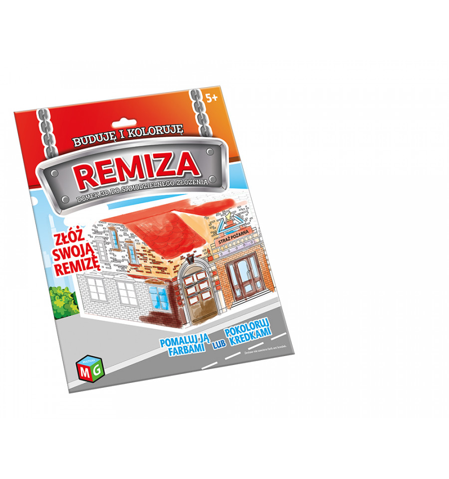 Buduję i koloruję Remiza to fantastyczna zabawa dla młodych artystów. Remiza 3D do samodzielnego złożenia, rozwija kreatywność. Remiza po złożeniu może zostać pomalowana kredkami lub farbami. Zestaw nie zawiera farb oraz kredek.